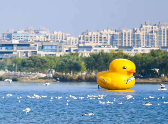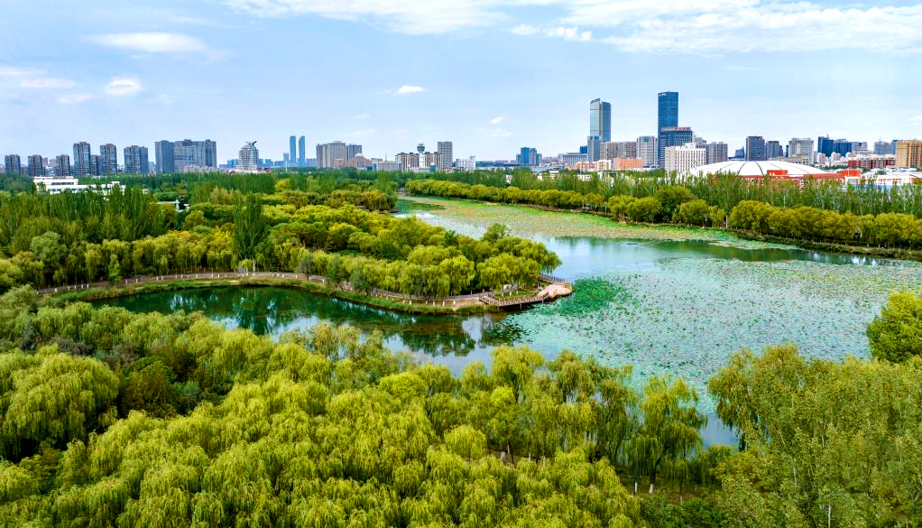 銀川老城秋日?qǐng)D景 紅嘴鷗如期赴約
